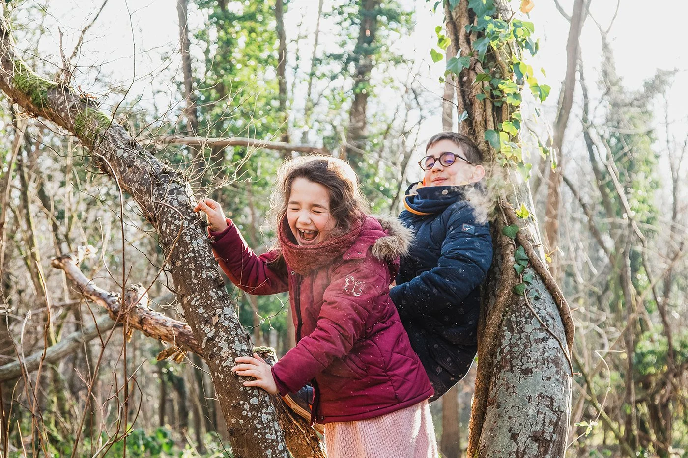 J’adore capter les contrastes : un enfant timide qui se cache sous le bras d’un parent, pendant qu’un frère ou une sœur traverse le jardin en sautillant.