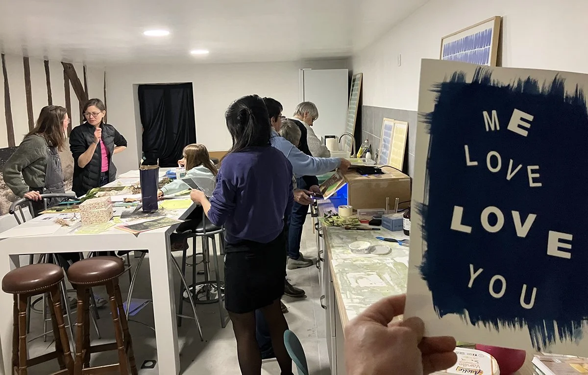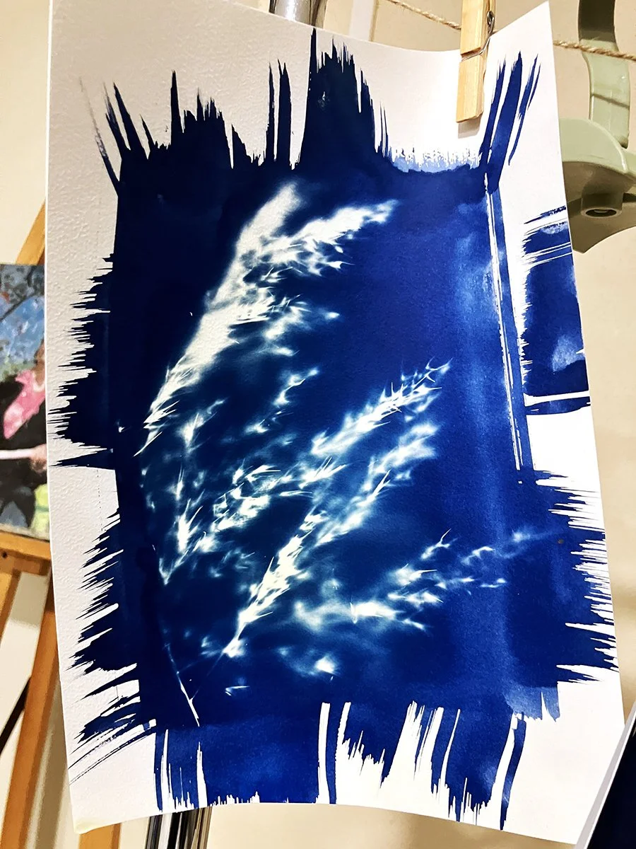 Cela fait plus de dix ans que j’entretiens une histoire d’amour avec le cyanotype, et chaque été, j’enseigne ce procédé pendant mon cours d’été avec Oxbridge. Récemment, j’ai animé un atelier à La Chouette au Loing, un nouvel espace polyvalent qui a ouvert à Moret-sur-Loing.