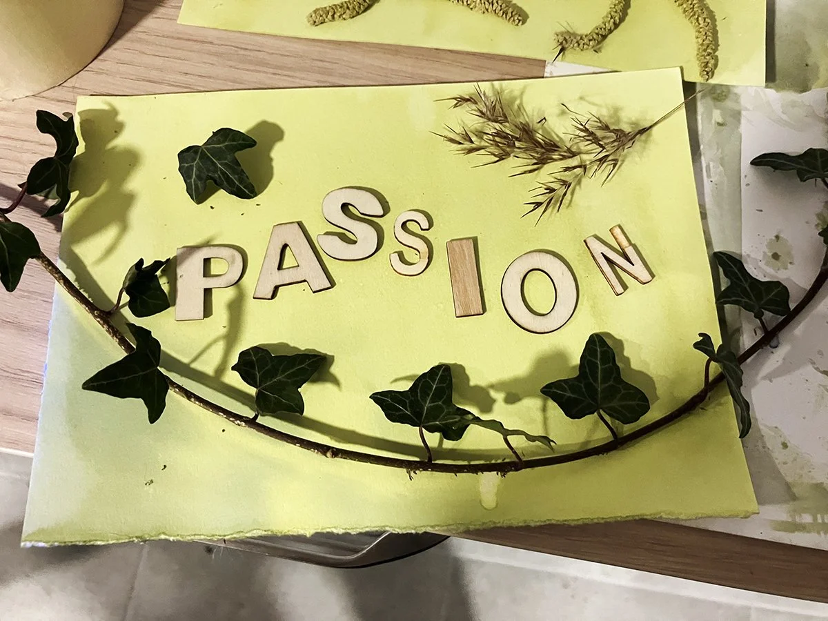 Nous avons utilisé des plantes, des négatifs, des pinceaux et des brosses en mousse, ainsi qu’une lampe UV, car à cette époque de l’année, on ne peut pas encore vraiment compter sur le soleil. J’aime observer les expérimentations de chacun : certain·es adorent voir les traces de pinceau, d’autres préfèrent des bordures nettes et minimalistes.